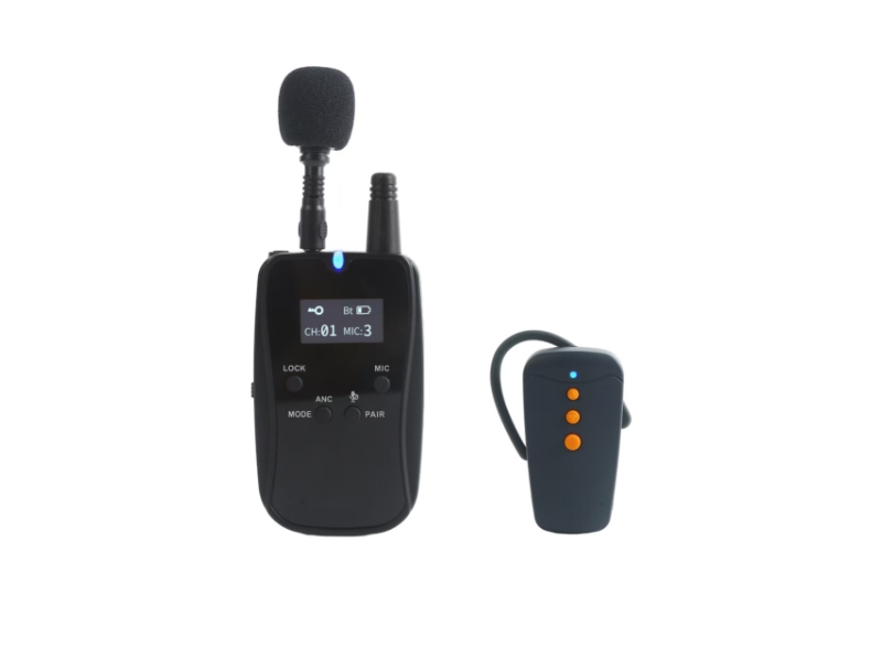 WAT07 is a new compact system for daily tour guiding. The receiver has a size of Bluetooth earphone. It can be hanged on ear and is very convenient to use. The speaker of the receiver is out of ear and very easy to be cleaned. There is no need to use a wired headphone. The receiver is powered by rechargeable Lithium battery. The battery can last 20 hours per charge. The ear-hook is replaceable and can be positioned for left and right ears.